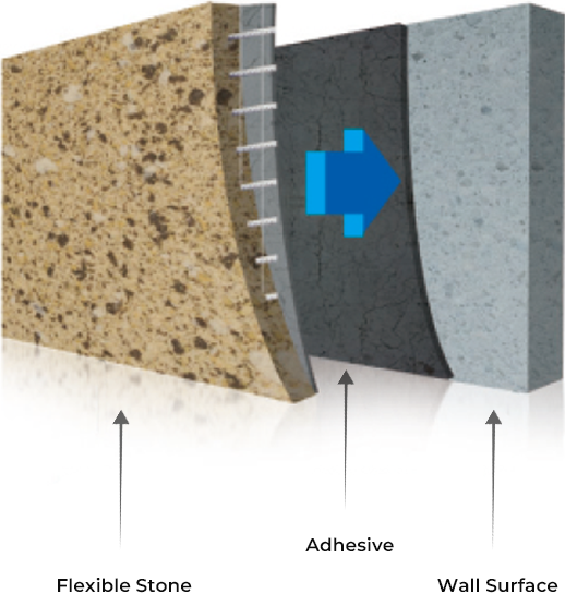 La pierre flexible JUSTONE présente un processus d'installation simple.